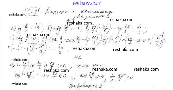 Представляем вам сборники по Алгебре, с готовыми ответами к Самостоятельным работам Александрова школьной программы для учеников десятый класса. Это не просто гдз с ответом, а с подсказками, как верно решить СР-8. Тангес и котангес Глава 2. Тригонометрические функции вариант 1. Проверяй домашку с умом и получай высший балл!
