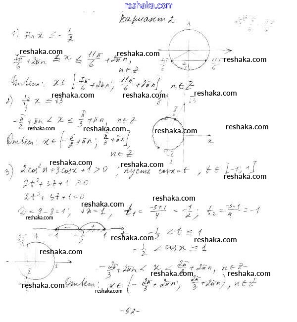Решака - онлайн ответы Алгебра Александрова за 10 класс Самостоятельные работы Базовый уровень ФГОС 2017 - вариант 2