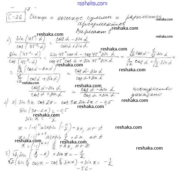 Решака - онлайн ответы Алгебра Александрова за 10 класс Самостоятельные работы Базовый уровень ФГОС 2017 - вариант 1