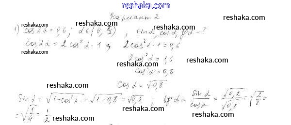 Решака - онлайн ответы Алгебра Александрова за 10 класс Самостоятельные работы Базовый уровень ФГОС 2017 - вариант 2