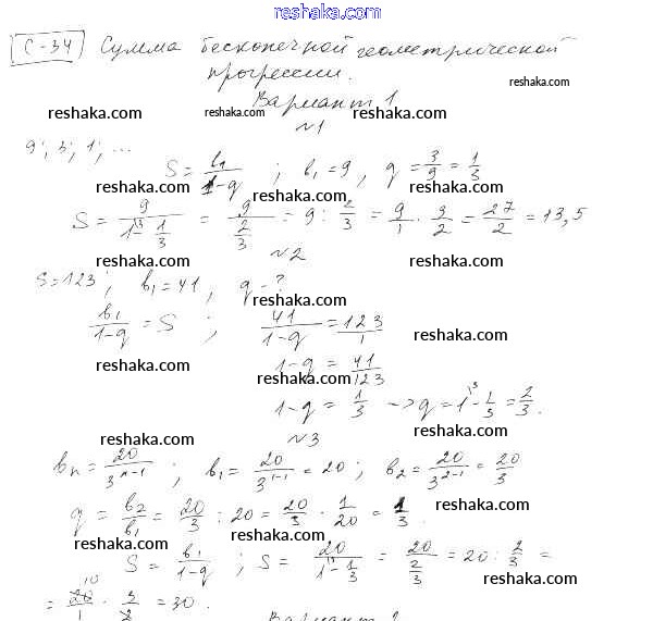 Представляем вам сборники по Алгебре, с готовыми ответами к Самостоятельным работам Александрова школьной программы для учеников десятый класса. Это не просто гдз с ответом, а с подсказками, как верно решить СР-34. Сумма бесконечной геометрической прогрессии Глава 5. Производная вариант 1. Проверяй домашку с умом и получай высший балл!