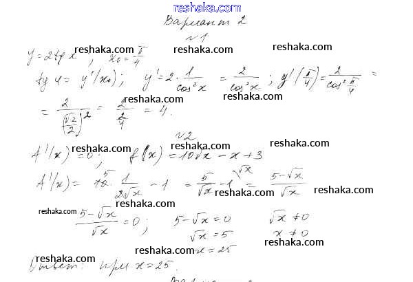 Решака - онлайн ответы Алгебра Александрова за 10 класс Самостоятельные работы Базовый уровень ФГОС 2017 - вариант 2