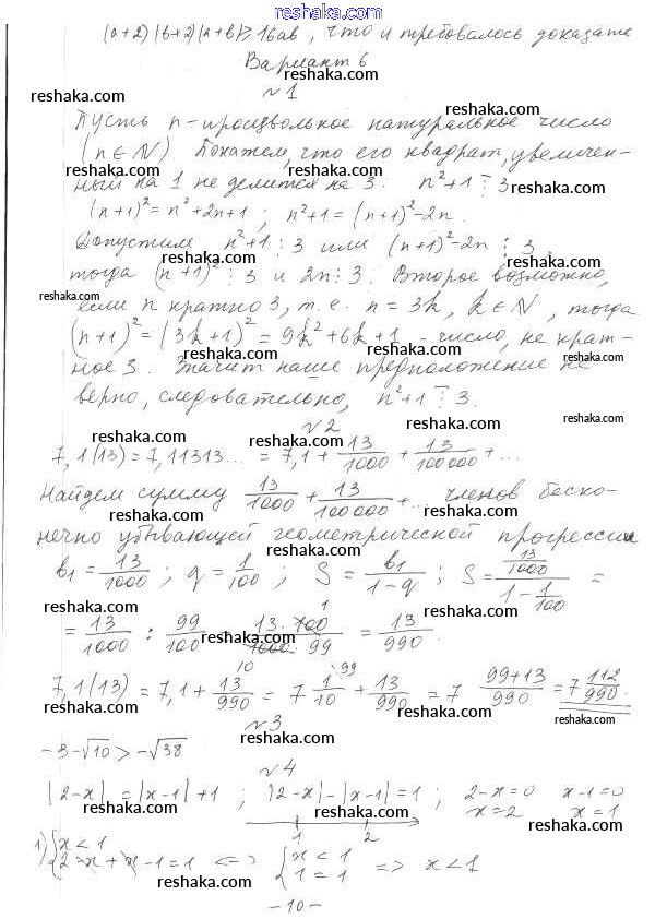 Решака - онлайн ответы Алгебра Глизбург за 10 класс Контрольные работы Базовый и углубленный уровень ФГОС 2014 - вариант 6