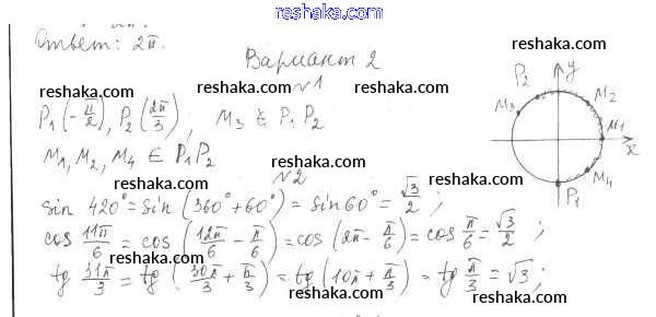 Решака - онлайн ответы Алгебра Глизбург за 10 класс Контрольные работы Базовый и углубленный уровень ФГОС 2014 - вариант 2