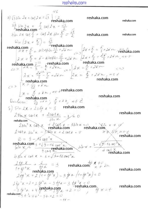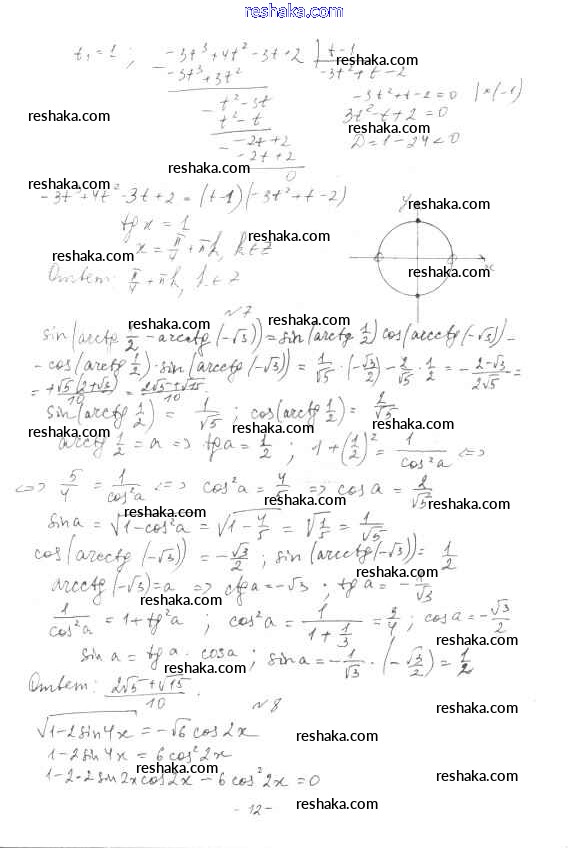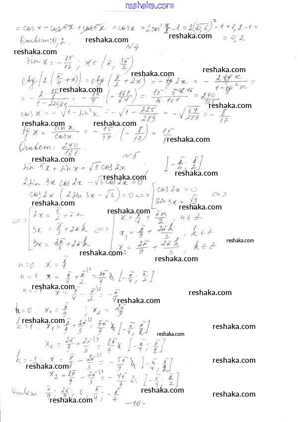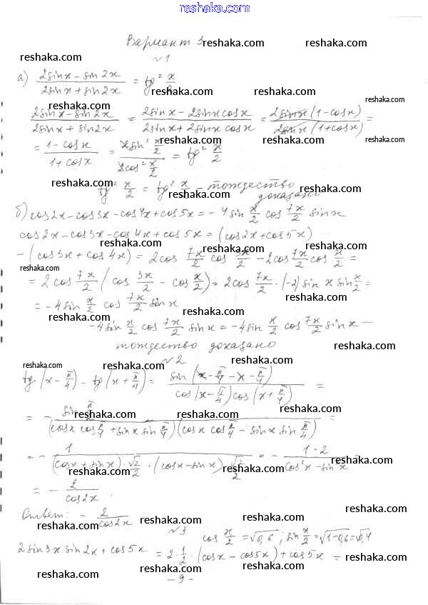 Решака - онлайн ответы Алгебра Глизбург за 10 класс Контрольные работы Базовый и углубленный уровень ФГОС 2014 - вариант 3