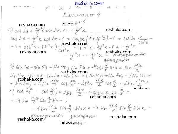 Решака - онлайн ответы Алгебра Глизбург за 10 класс Контрольные работы Базовый и углубленный уровень ФГОС 2014 - вариант 4