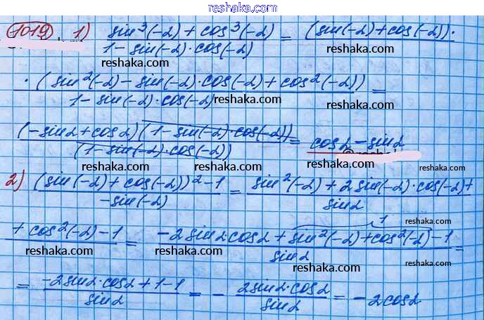 Решака - онлайн ответы Алгебра Колягин, Ткачёва за 10 класс Учебник Базовый и углубленный уровень ФГОС 2017 - 1019