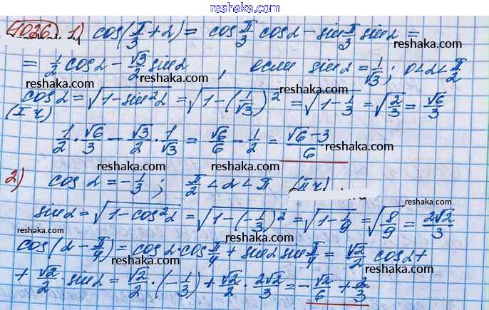 Решака - онлайн ответы Алгебра Колягин, Ткачёва за 10 класс Учебник Базовый и углубленный уровень ФГОС 2017 - 1026