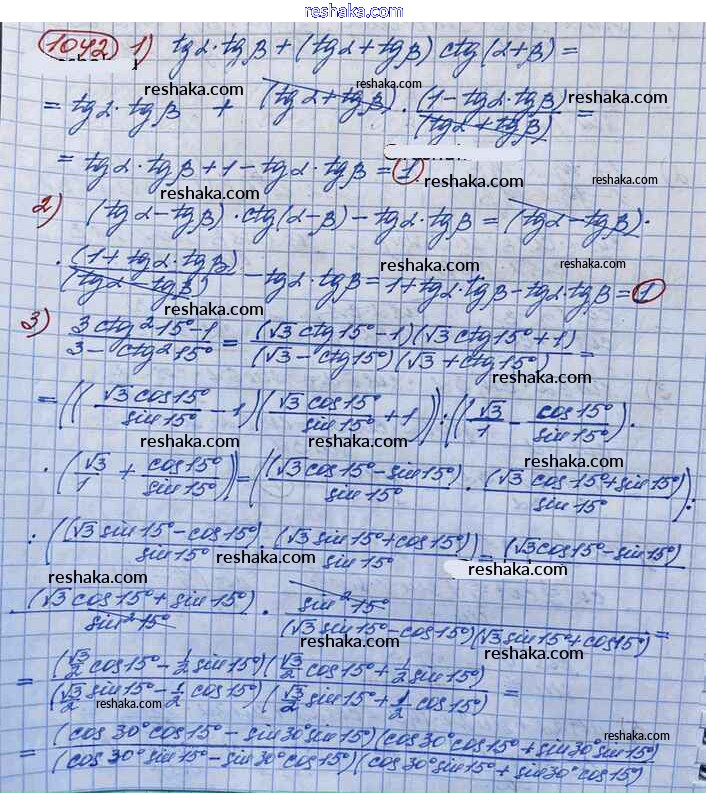 Решака - онлайн ответы Алгебра Колягин, Ткачёва за 10 класс Учебник Базовый и углубленный уровень ФГОС 2017 - 1042