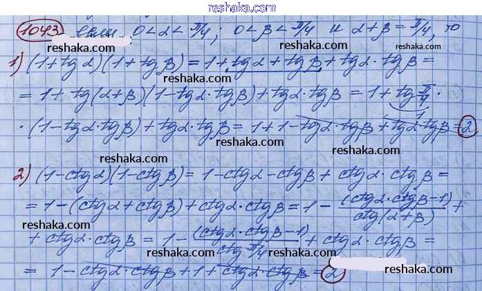 Решака - онлайн ответы Алгебра Колягин, Ткачёва за 10 класс Учебник Базовый и углубленный уровень ФГОС 2017 - 1043