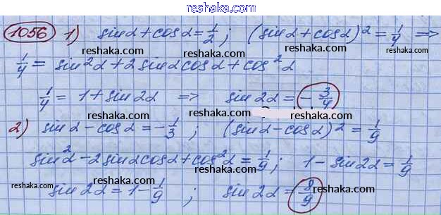 Представляем вам сборники по Алгебре, с готовыми ответами к Учебнику Колягин школьной программы для учеников десятый класса. Это не просто гдз с ответом, а с подсказками, как верно решить Упражнения 1056. Проверяй домашку с умом и получай высший балл!