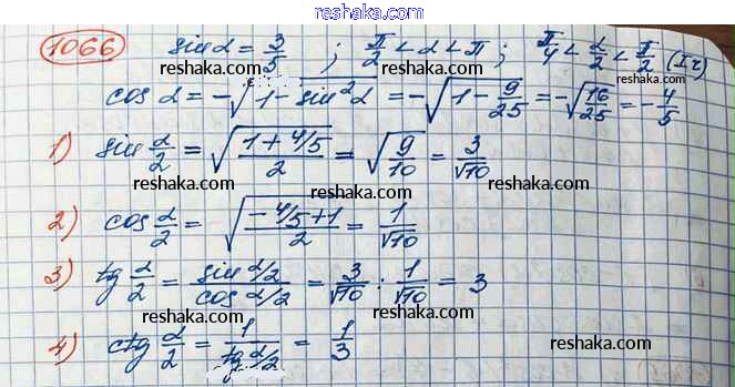 Решака - онлайн ответы Алгебра Колягин, Ткачёва за 10 класс Учебник Базовый и углубленный уровень ФГОС 2017 - 1066