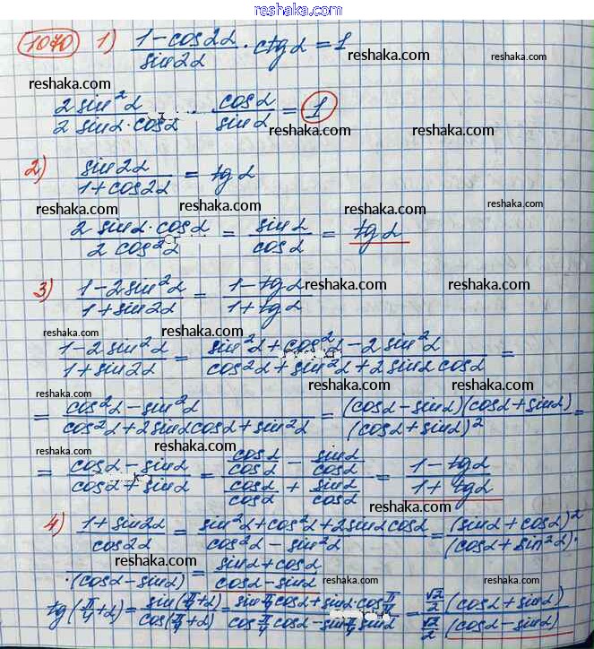 Решака - онлайн ответы Алгебра Колягин, Ткачёва за 10 класс Учебник Базовый и углубленный уровень ФГОС 2017 - 1070