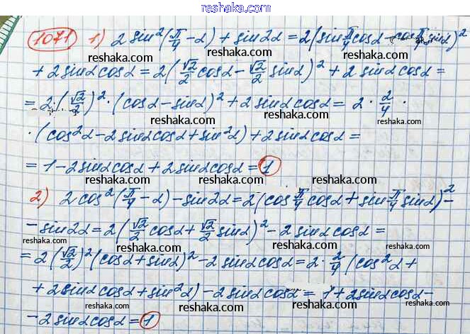 Решака - онлайн ответы Алгебра Колягин, Ткачёва за 10 класс Учебник Базовый и углубленный уровень ФГОС 2017 - 1071