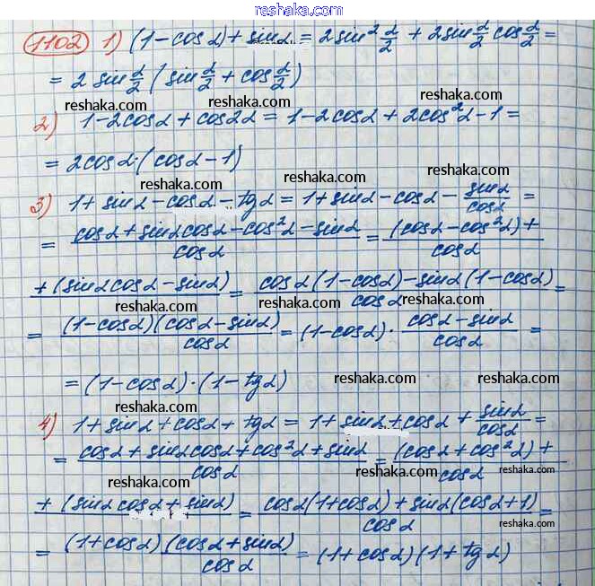 Решака - онлайн ответы Алгебра Колягин, Ткачёва за 10 класс Учебник Базовый и углубленный уровень ФГОС 2017 - 1102