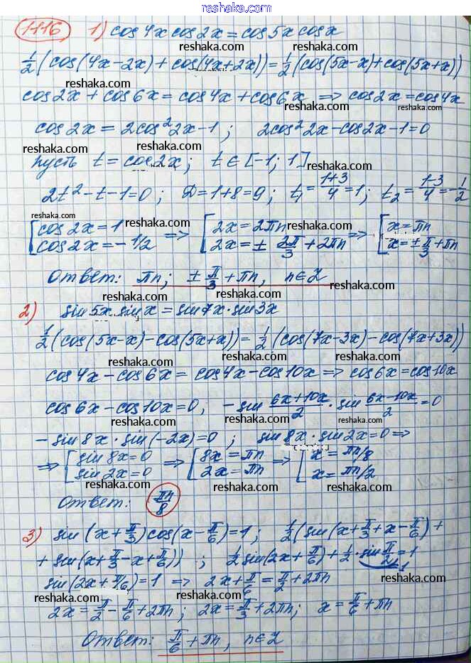 Решака - онлайн ответы Алгебра Колягин, Ткачёва за 10 класс Учебник Базовый и углубленный уровень ФГОС 2017 - 1116