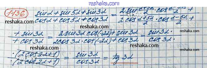 Решака - онлайн ответы Алгебра Колягин, Ткачёва за 10 класс Учебник Базовый и углубленный уровень ФГОС 2017 - 1136