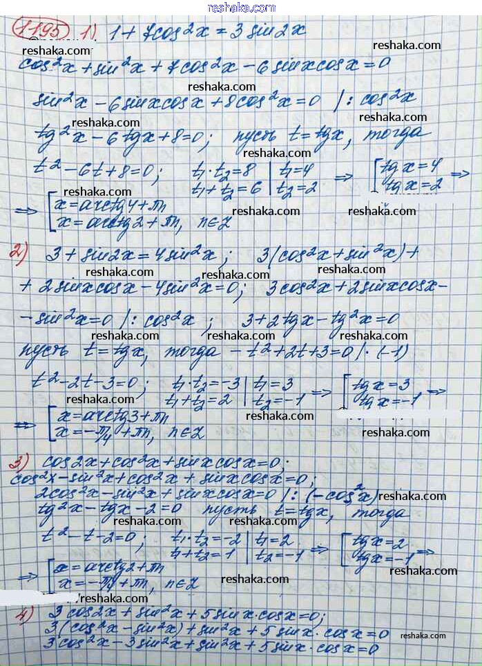 Представляем вам сборники по Алгебре, с готовыми ответами к Учебнику Колягин школьной программы для учеников десятый класса. Это не просто гдз с ответом, а с подсказками, как верно решить Упражнения 1195. Проверяй домашку с умом и получай высший балл!