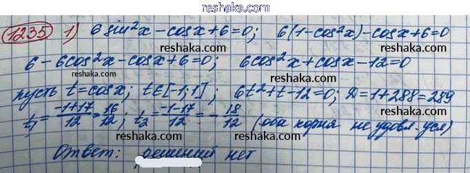Решака - онлайн ответы Алгебра Колягин, Ткачёва за 10 класс Учебник Базовый и углубленный уровень ФГОС 2017 - 1235