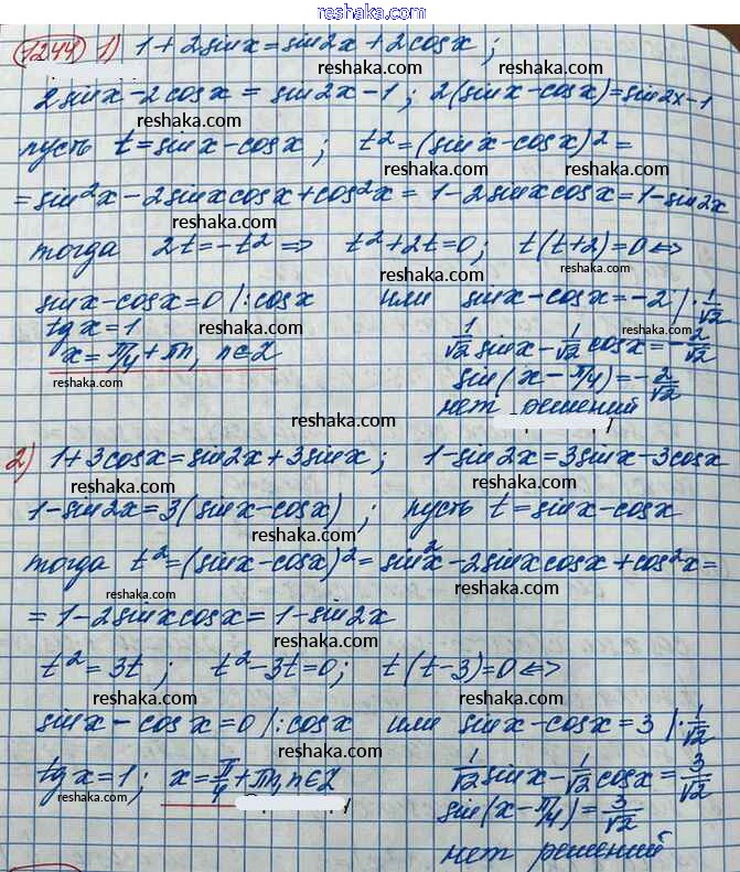 Представляем вам сборники по Алгебре, с готовыми ответами к Учебнику Колягин школьной программы для учеников десятый класса. Это не просто гдз с ответом, а с подсказками, как верно решить Упражнения 1244. Проверяй домашку с умом и получай высший балл!