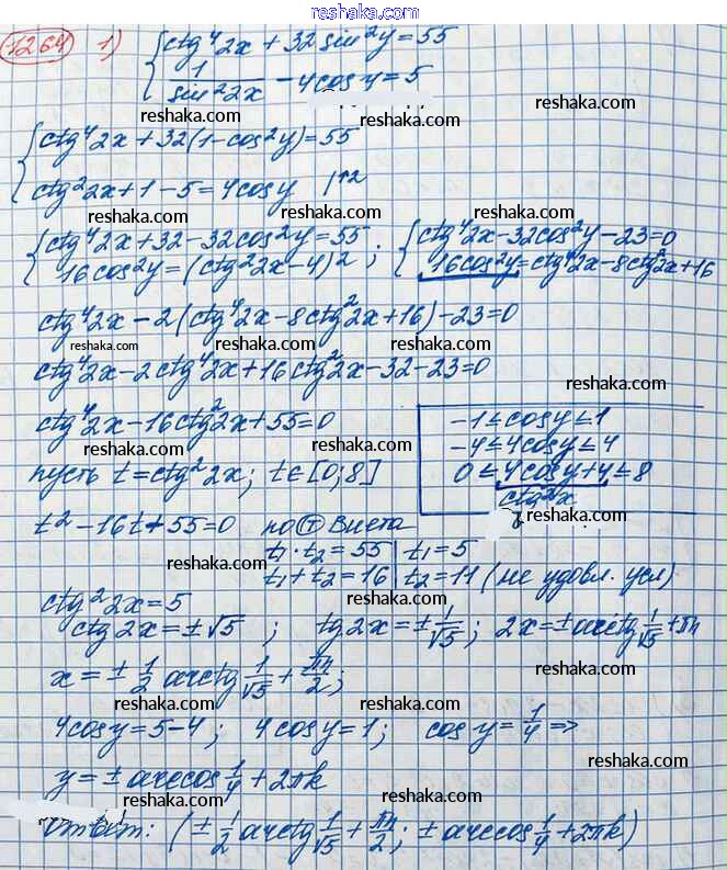 Представляем вам сборники по Алгебре, с готовыми ответами к Учебнику Колягин школьной программы для учеников десятый класса. Это не просто гдз с ответом, а с подсказками, как верно решить Упражнения 1264. Проверяй домашку с умом и получай высший балл!