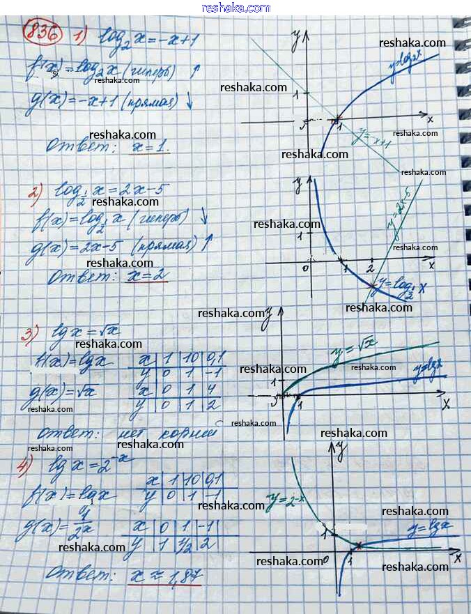 Решака - онлайн ответы Алгебра Колягин, Ткачёва за 10 класс Учебник Базовый и углубленный уровень ФГОС 2017 - 836