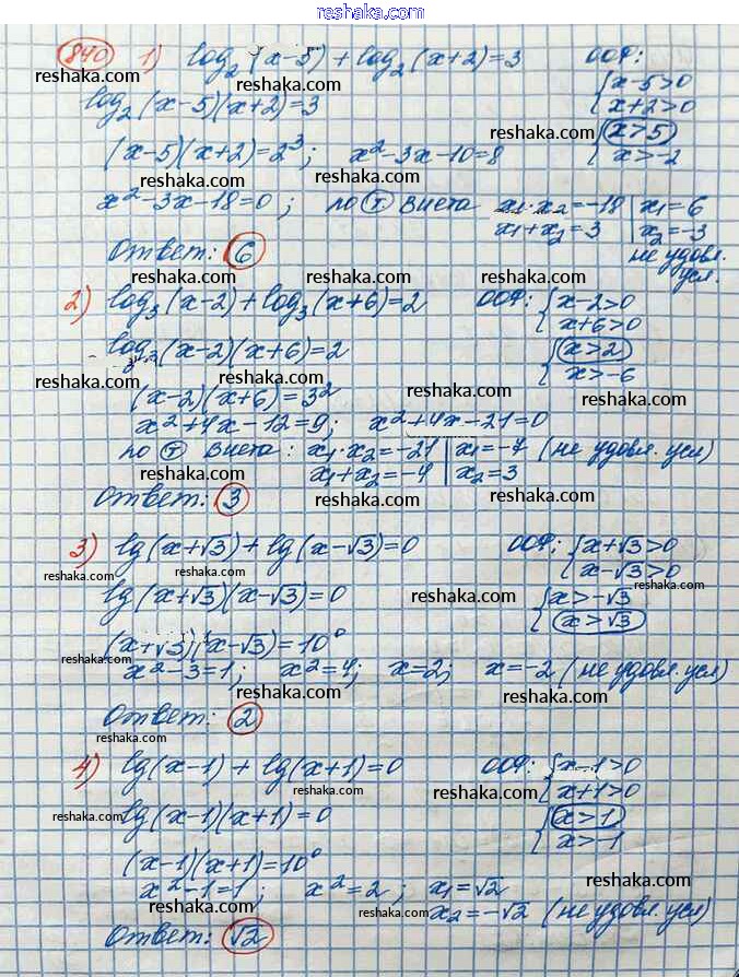 Решака - онлайн ответы Алгебра Колягин, Ткачёва за 10 класс Учебник Базовый и углубленный уровень ФГОС 2017 - 840
