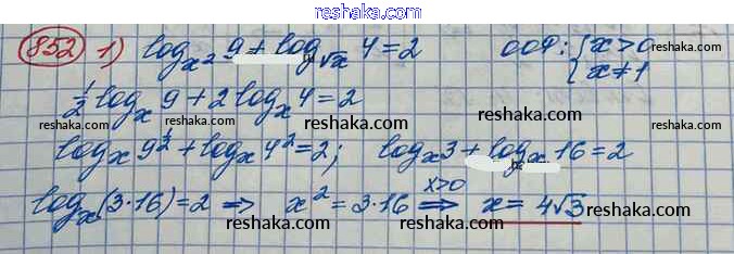 Решака - онлайн ответы Алгебра Колягин, Ткачёва за 10 класс Учебник Базовый и углубленный уровень ФГОС 2017 - 852