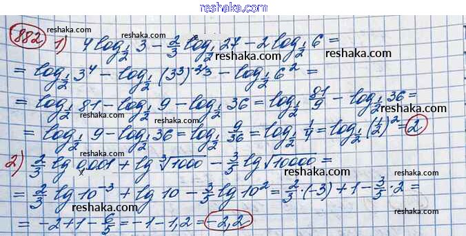 Решака - онлайн ответы Алгебра Колягин, Ткачёва за 10 класс Учебник Базовый и углубленный уровень ФГОС 2017 - 882