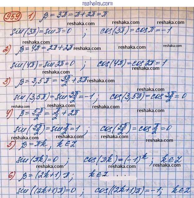 Решака - онлайн ответы Алгебра Колягин, Ткачёва за 10 класс Учебник Базовый и углубленный уровень ФГОС 2017 - 959
