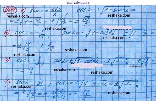 Решака - онлайн ответы Алгебра Колягин, Ткачёва за 10 класс Учебник Базовый и углубленный уровень ФГОС 2017 - 994