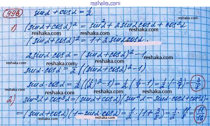 Решака - онлайн ответы Алгебра Колягин, Ткачёва за 10 класс Учебник Базовый и углубленный уровень ФГОС 2017 - 998