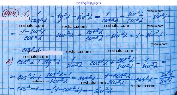 Решака - онлайн ответы Алгебра Колягин, Ткачёва за 10 класс Учебник Базовый и углубленный уровень ФГОС 2017 - 999