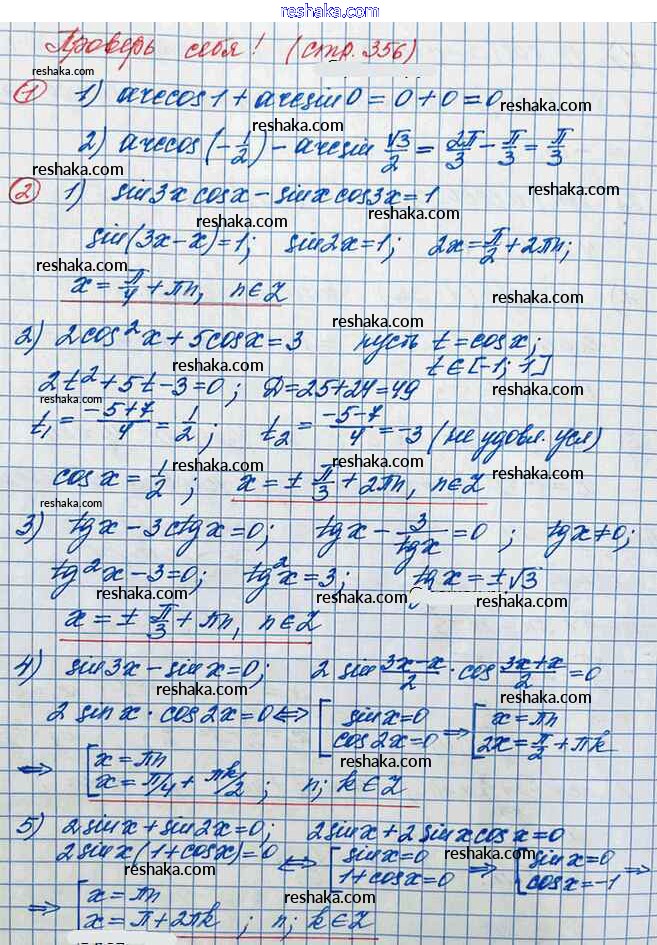 Решака - онлайн ответы Алгебра Колягин, Ткачёва за 10 класс Учебник Базовый и углубленный уровень ФГОС 2017 - 9. стр. 356