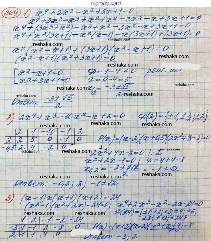 Решака - онлайн ответы Алгебра Колягин, Ткачёва за 10 класс Учебник Базовый и углубленный уровень ФГОС 2017 - 399