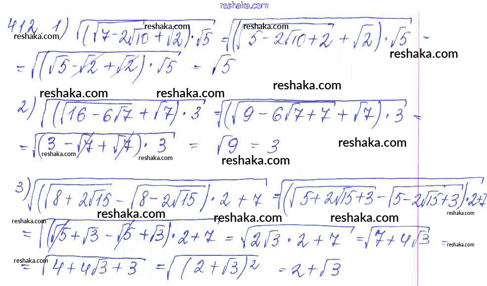 Решака - онлайн ответы Алгебра Колягин, Ткачёва за 10 класс Учебник Базовый и углубленный уровень ФГОС 2017 - 412