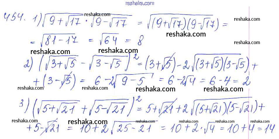 Решака - онлайн ответы Алгебра Колягин, Ткачёва за 10 класс Учебник Базовый и углубленный уровень ФГОС 2017 - 454