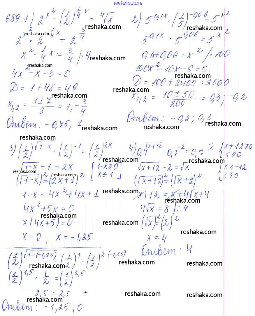 Решака - онлайн ответы Алгебра Колягин, Ткачёва за 10 класс Учебник Базовый и углубленный уровень ФГОС 2017 - 689