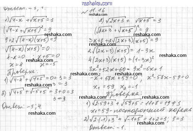 Представляем вам сборники по Алгебре, с готовыми ответами к Учебнику Мерзляк школьной программы для учеников десятый класса. Это не просто гдз с ответом, а с подсказками, как верно решить §11. Иррациональные уравнения 11.16. Проверяй домашку с умом и получай высший балл!