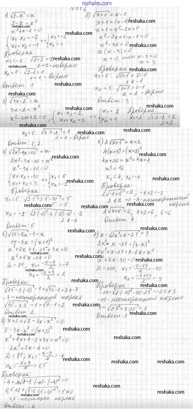 Представляем вам сборники по Алгебре, с готовыми ответами к Учебнику Мерзляк школьной программы для учеников десятый класса. Это не просто гдз с ответом, а с подсказками, как верно решить §11. Иррациональные уравнения 11.6. Проверяй домашку с умом и получай высший балл!