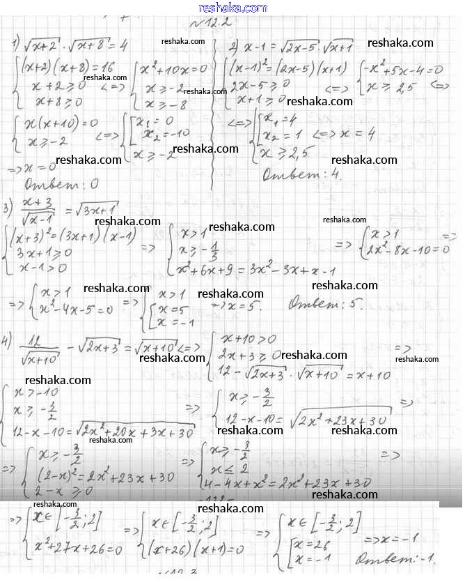 Представляем вам сборники по Алгебре, с готовыми ответами к Учебнику Мерзляк школьной программы для учеников десятый класса. Это не просто гдз с ответом, а с подсказками, как верно решить §12. Иррациональные уравнения 12.2. Проверяй домашку с умом и получай высший балл!