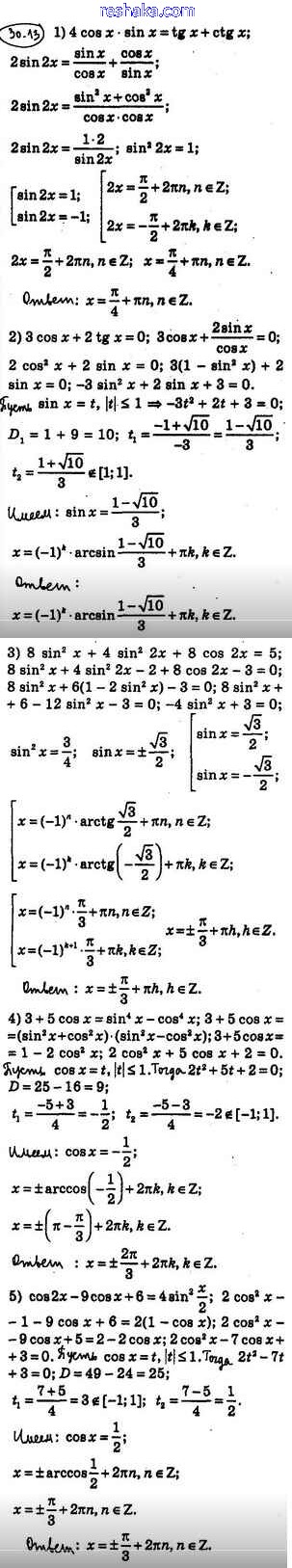 Представляем вам сборники по Алгебре, с готовыми ответами к Учебнику Мерзляк школьной программы для учеников десятый класса. Это не просто гдз с ответом, а с подсказками, как верно решить §30. Тригонометрические уравнения, сводящиеся к алгебраическим 30.13. Проверяй домашку с умом и получай высший балл!