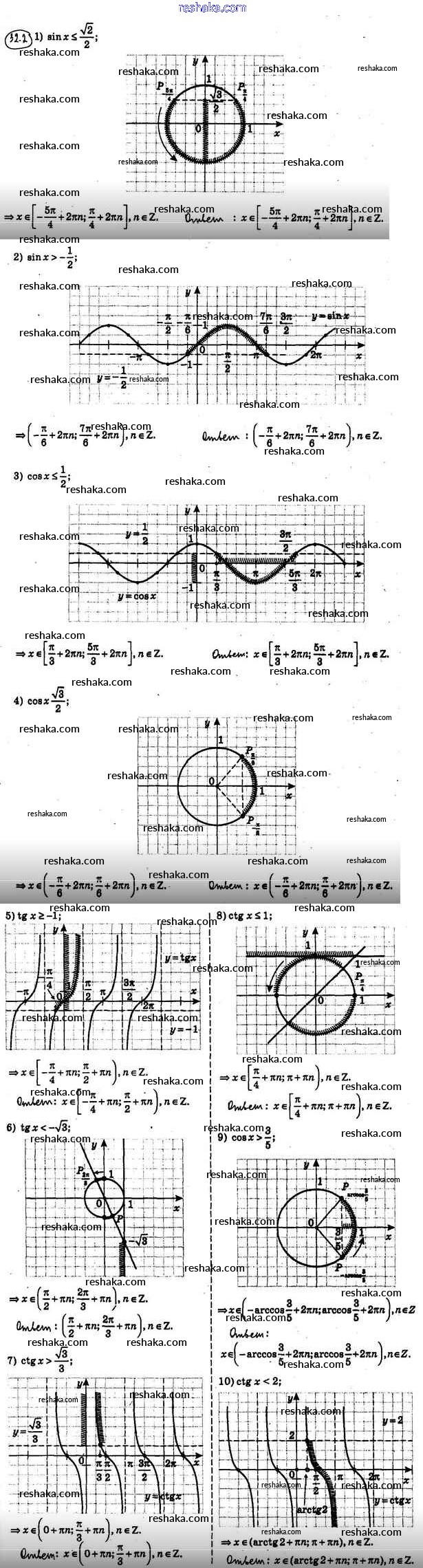 Представляем вам сборники по Алгебре, с готовыми ответами к Учебнику Мерзляк школьной программы для учеников десятый класса. Это не просто гдз с ответом, а с подсказками, как верно решить §32. Решение простейших тригонометрических неравенств 32.2. Проверяй домашку с умом и получай высший балл!