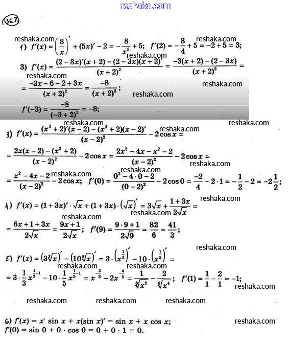 Представляем вам сборники по Алгебре, с готовыми ответами к Учебнику Мерзляк школьной программы для учеников десятый класса. Это не просто гдз с ответом, а с подсказками, как верно решить §36. Правила вычисления производных 36.7. Проверяй домашку с умом и получай высший балл!