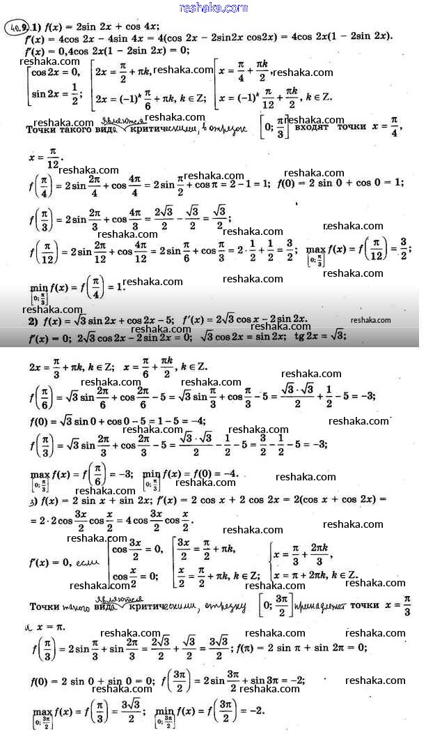 Представляем вам сборники по Алгебре, с готовыми ответами к Учебнику Мерзляк школьной программы для учеников десятый класса. Это не просто гдз с ответом, а с подсказками, как верно решить §40. Применение производной при нахождении наибольшего и наименьшего значений функции 40.9. Проверяй домашку с умом и получай высший балл!