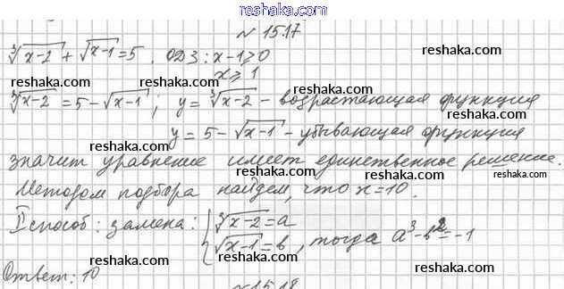 Представляем вам сборники по Алгебре, с готовыми ответами к Учебнику Мерзляк школьной программы для учеников десятый класса. Это не просто гдз с ответом, а с подсказками, как верно решить §15. Различные приёмы решения иррациональных уравнений и их систем 15.17. Проверяй домашку с умом и получай высший балл!
