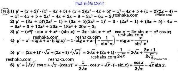 Представляем вам сборники по Алгебре, с готовыми ответами к Учебнику Мерзляк школьной программы для учеников десятый класса. Это не просто гдз с ответом, а с подсказками, как верно решить §39. Правила вычисления производных 39.3. Проверяй домашку с умом и получай высший балл!