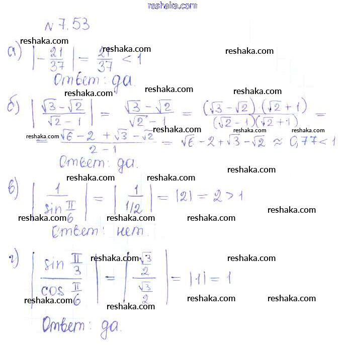 Представляем вам сборники по Алгебре, с готовыми ответами к Учебнику Никольский школьной программы для учеников десятый класса. Это не просто гдз с ответом, а с подсказками, как верно решить §7. Синус и косинус угла Глава 2. Тригонометрические формулы. Тригонометрические функции 53. Проверяй домашку с умом и получай высший балл!