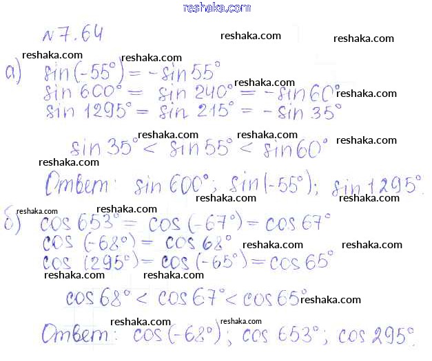 Представляем вам сборники по Алгебре, с готовыми ответами к Учебнику Никольский школьной программы для учеников десятый класса. Это не просто гдз с ответом, а с подсказками, как верно решить §7. Синус и косинус угла Глава 2. Тригонометрические формулы. Тригонометрические функции 64. Проверяй домашку с умом и получай высший балл!