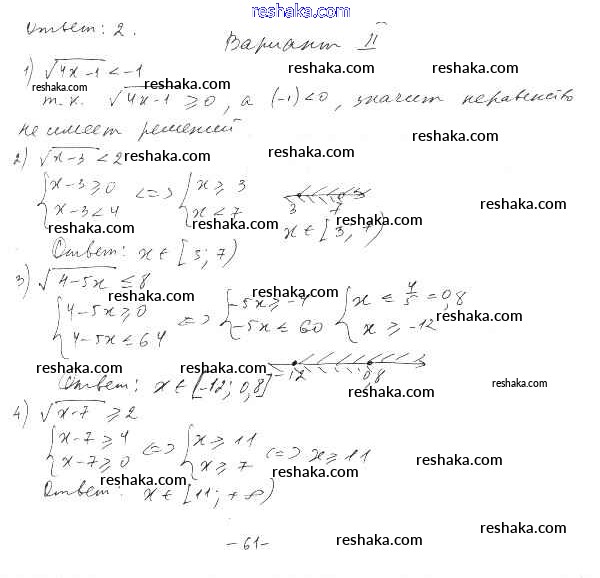 Решака - онлайн ответы Алгебра Шабунин, Ткачева за 10 класс Дидактические материалы Базовый и углубленный уровень ФГОС 2017 - вариант 2
